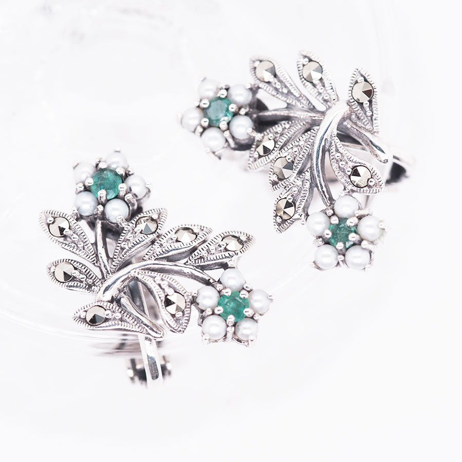 (925銀 + 天然祖母綠 + 馬克賽石 + 淡水珍珠|Art Deco 花卉貴氣)