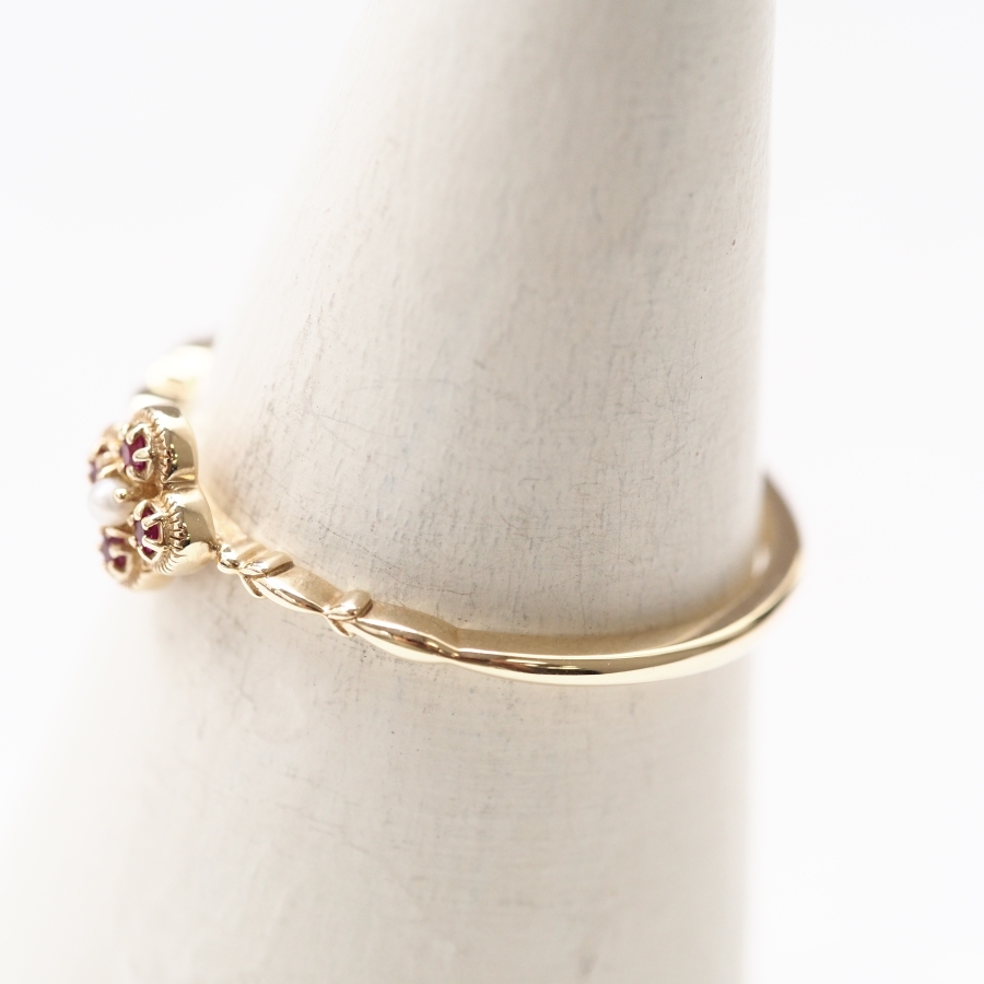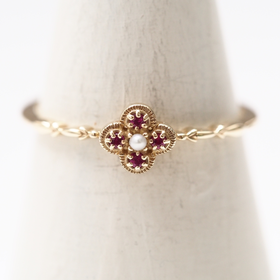 【Made in Japan】K10系列 紅寶石與海水珍珠 花戒指