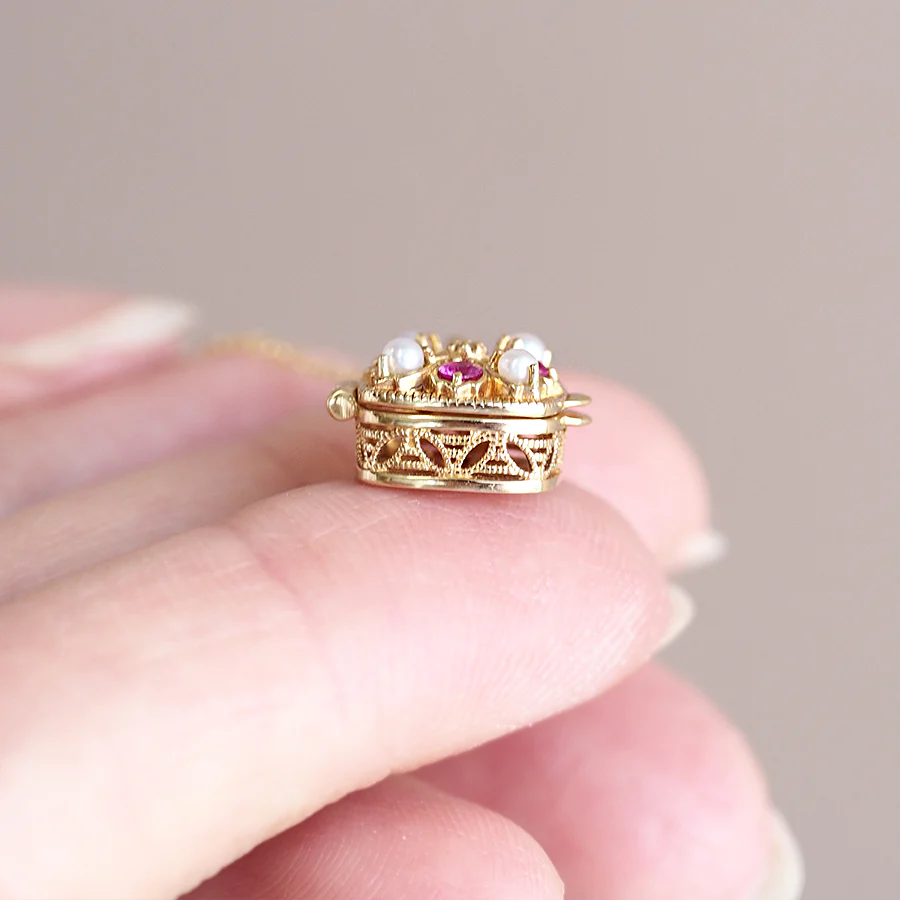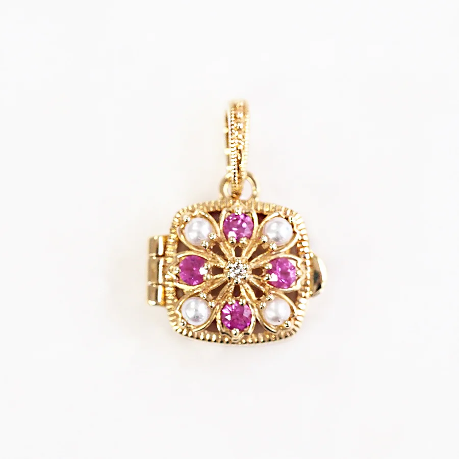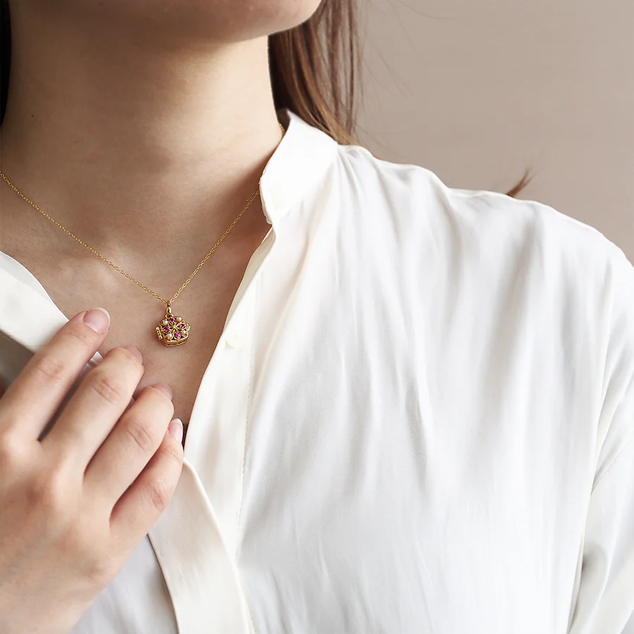 這是一款非常可愛的盒式吊墜,充滿了趣味元素,例如盒子頂部精緻的鏤空設計,以及可以打開和關閉的盒式吊墜。
