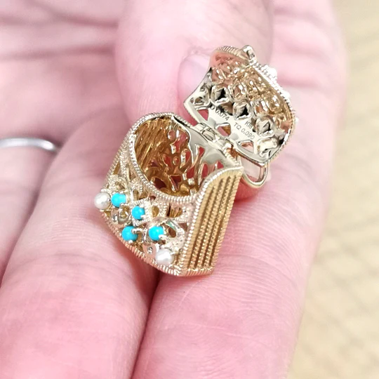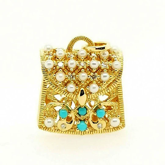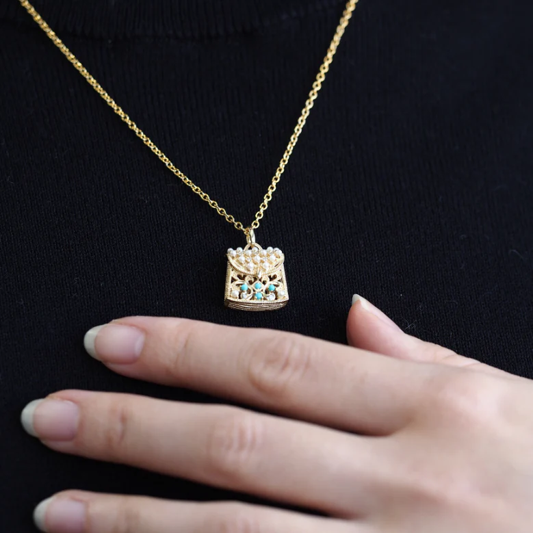 💎 2025-2026 金飾運勢指南|綠松石手提包吊墜 (K18黃金 + 天然綠松石 + 珍珠 + 鑽石|可開合手袋設計,復古蕾絲包款,吊墜專用) 「綠松生財,珍珠納福,鑽石閃貴」 您手上呢枚 K18黃金 + 綠松石 + 珍珠 + 鑽石手提包吊墜,五行木生火 + 水土調和,主打 財運爆發、家庭富足、貴人護航、健康滋養、化解小人 👜 歐洲復古風:黃金手袋身(土運藏財)+綠松石包扣(木主生財)+珍珠網紋(水主滋養)+鑽石閃邊(火生貴氣),象徵「綠松開運+珍珠聚福+鑽石守貴+木金生輝」! 可開合設計:包內可放小紙條/米粒/符咒,鎖定財願!單用吊墜:頸間貼心→旺家庭、長鏈外露→解鎖偏財,隨心切換樂運! 無需開光,心誠則靈!即刻睇您嘅生肖可唔可以戴~
