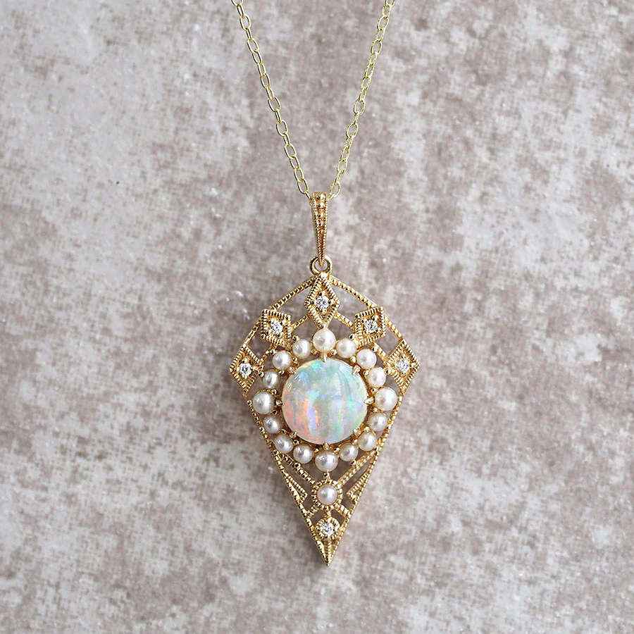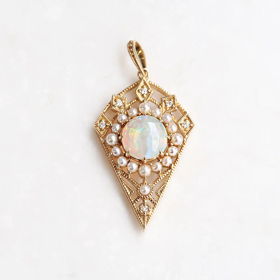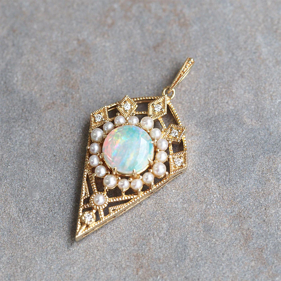 蛋白石周圍環繞著珍珠和鑽石。