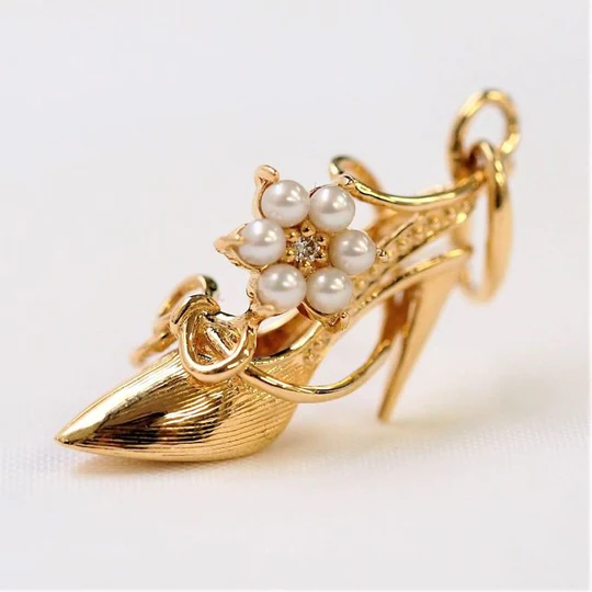 一枚高跟吊墜,造型酷似灰姑娘的水晶鞋。