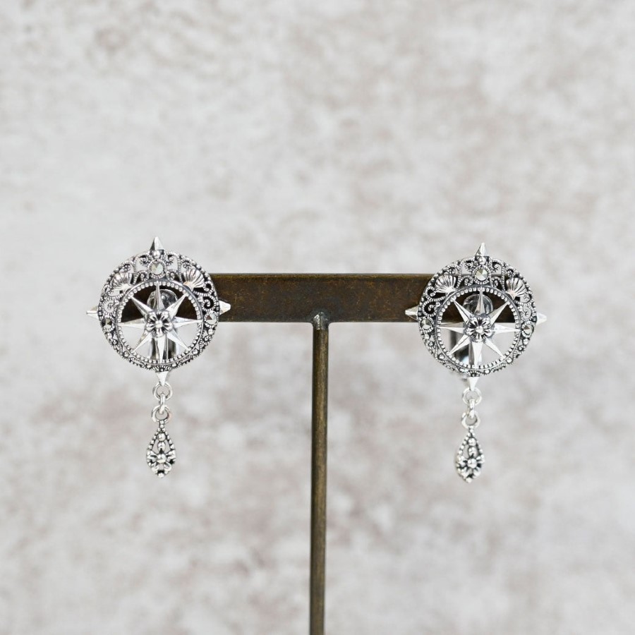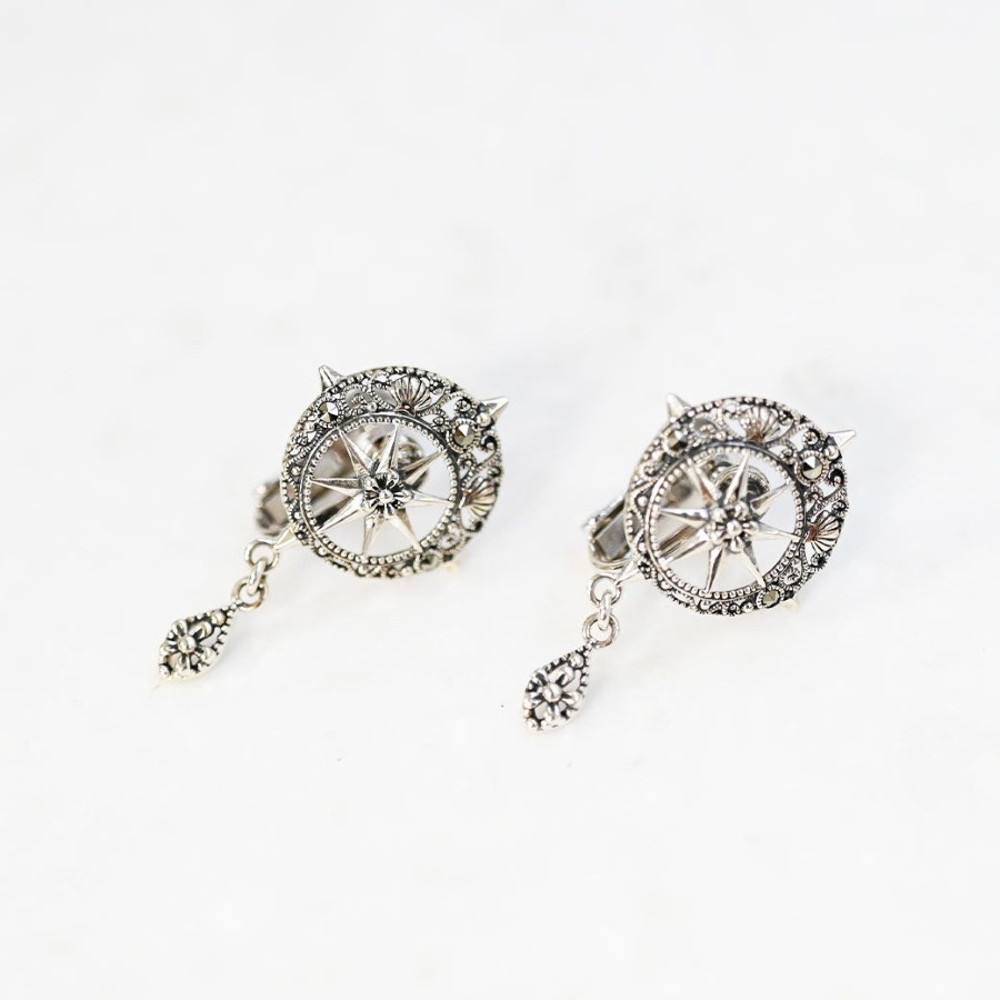 【Made in Japan】Marcasite 指南針 耳環/耳夾