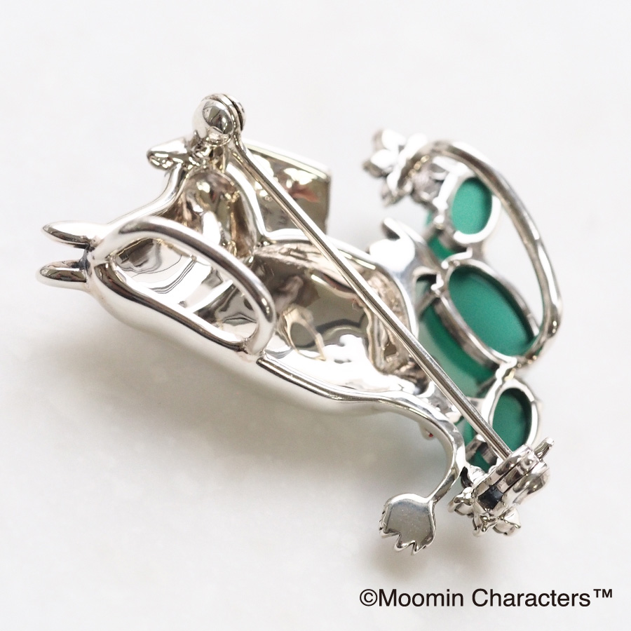 這款胸針吊墜的靈感源自於姆明正在閱讀的姆明漫畫《姆明谷的無憂無慮生活》。