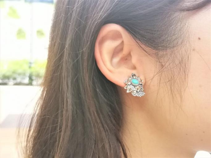 【Made in Japan】SV系列 綠松石花卉耳環/耳夾
