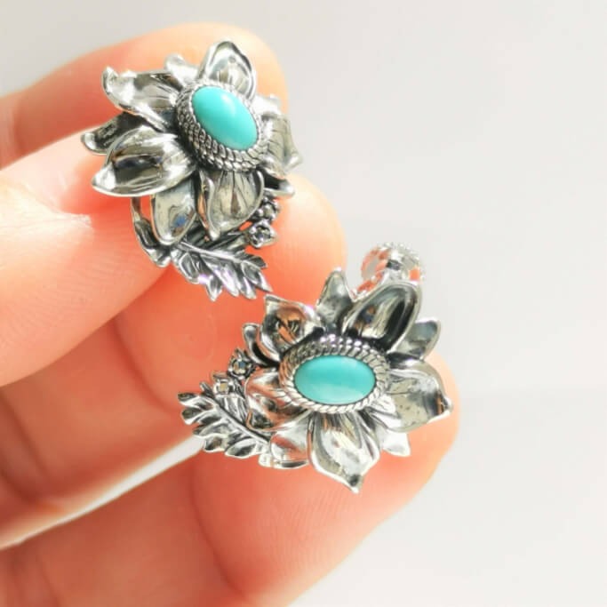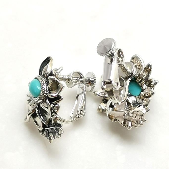 【Made in Japan】SV系列 綠松石花卉耳環/耳夾