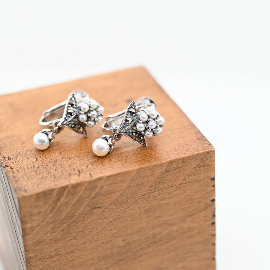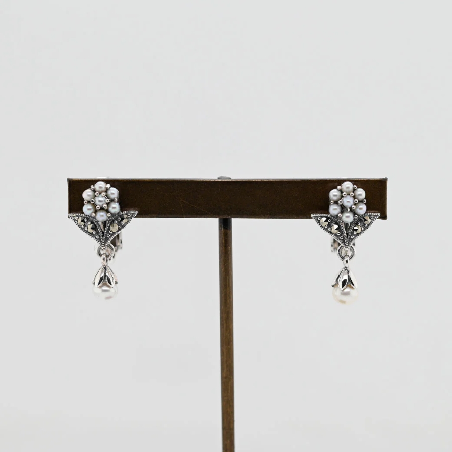 💚 2025-2026 銀飾運勢指南|Marcasite珍珠花漾耳環 (925銀 + Marcasite + 淡水珍珠|復古花卉垂墜,無耳洞夾式/耳針兩用) 「Marcasite 閃護,珍珠納福,銀花開運」 您手上呢對 925銀 + Marcasite + 珍珠花漾耳環,五行金水土調和,主打 貴人爆發、人緣提升、財運守成、健康和樂、化解口舌 🤍 歐洲復古風:Marcasite 滿鑲花瓣(吸財閃耀)+珍珠花心/垂珠(守福圓滿)+銀鏤空雕花,象徵「馬卡賽聚財+珍珠納福+金水生輝」! 兩用設計:耳針→職場專業、無耳洞夾→約會優雅,隨心切換樂運! 無需開光,心誠則靈!即刻睇您嘅生肖可唔可以戴~