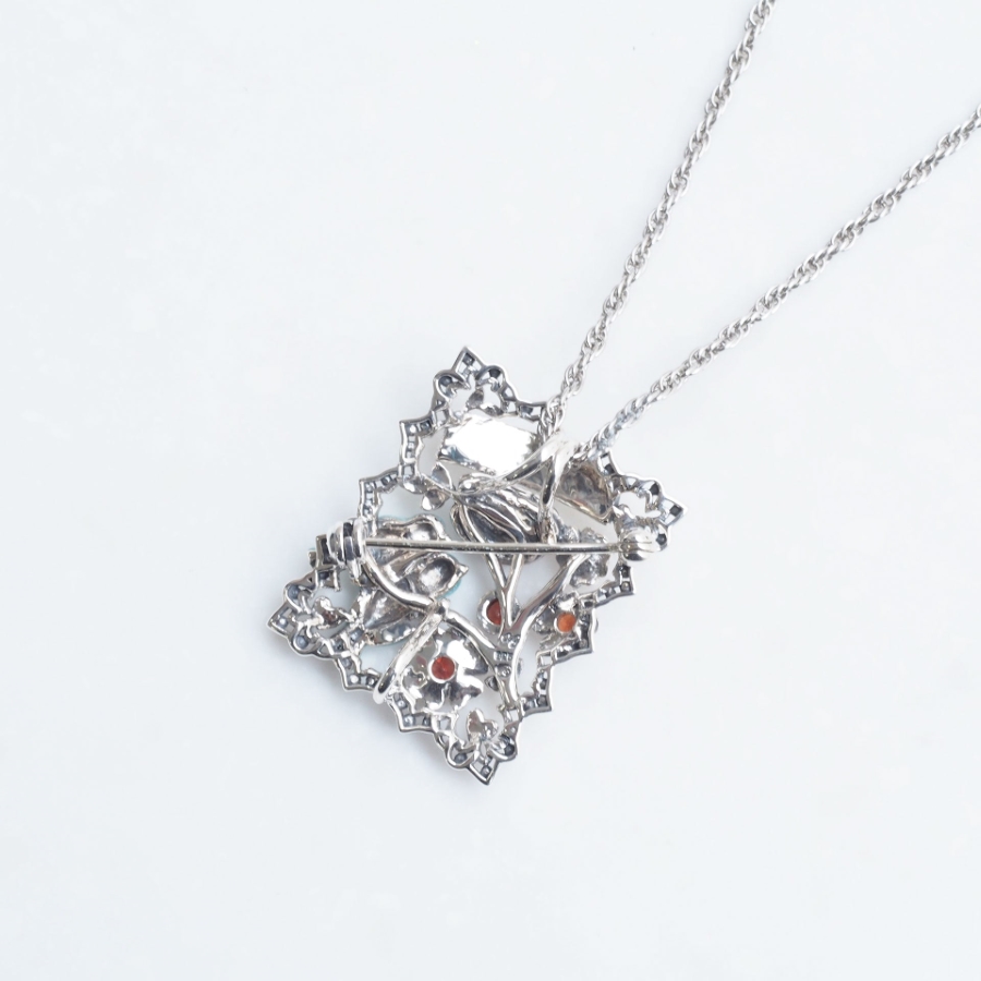 【Made in Japan】SV 石榴石珍珠小鳥吊咀胸針