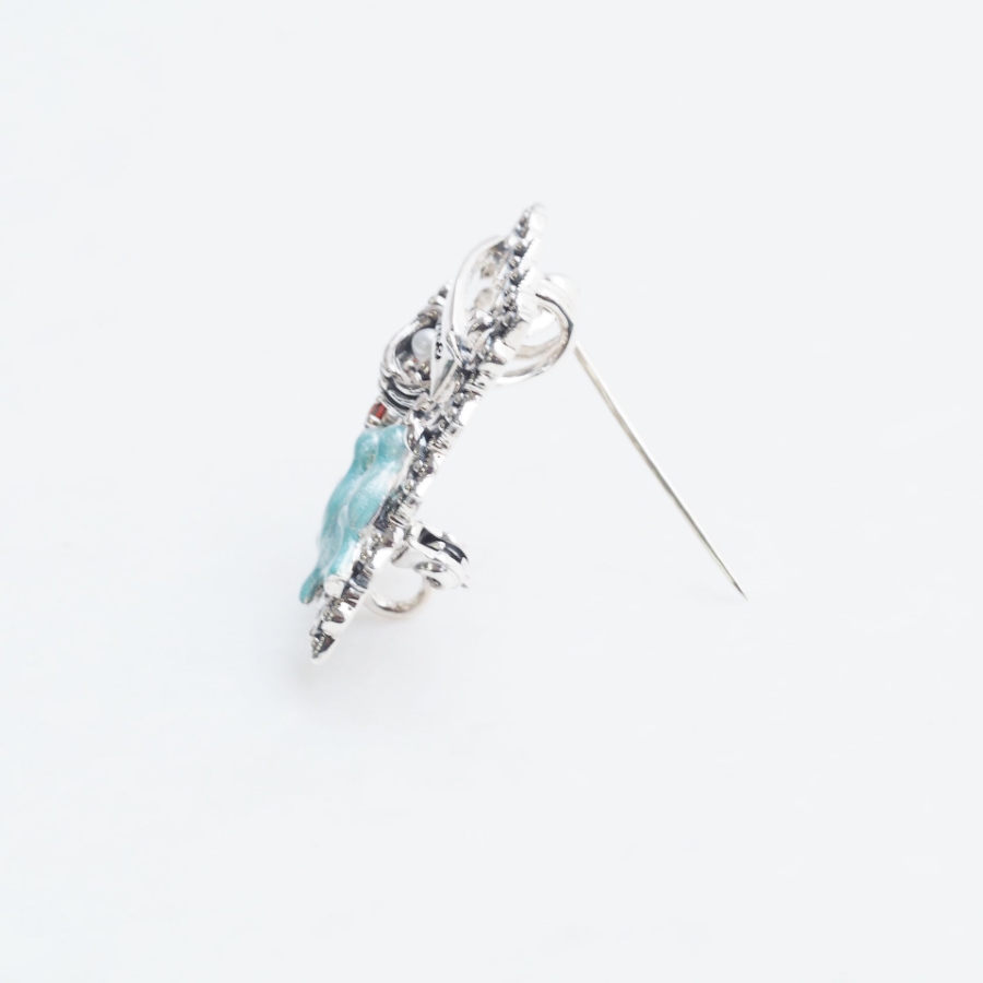 一隻被視為幸福象徵嘅藍色小鳥,甜甜地一齊望住蛋嘅可愛胸針。