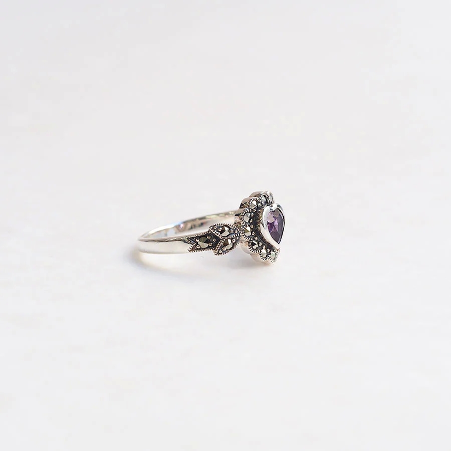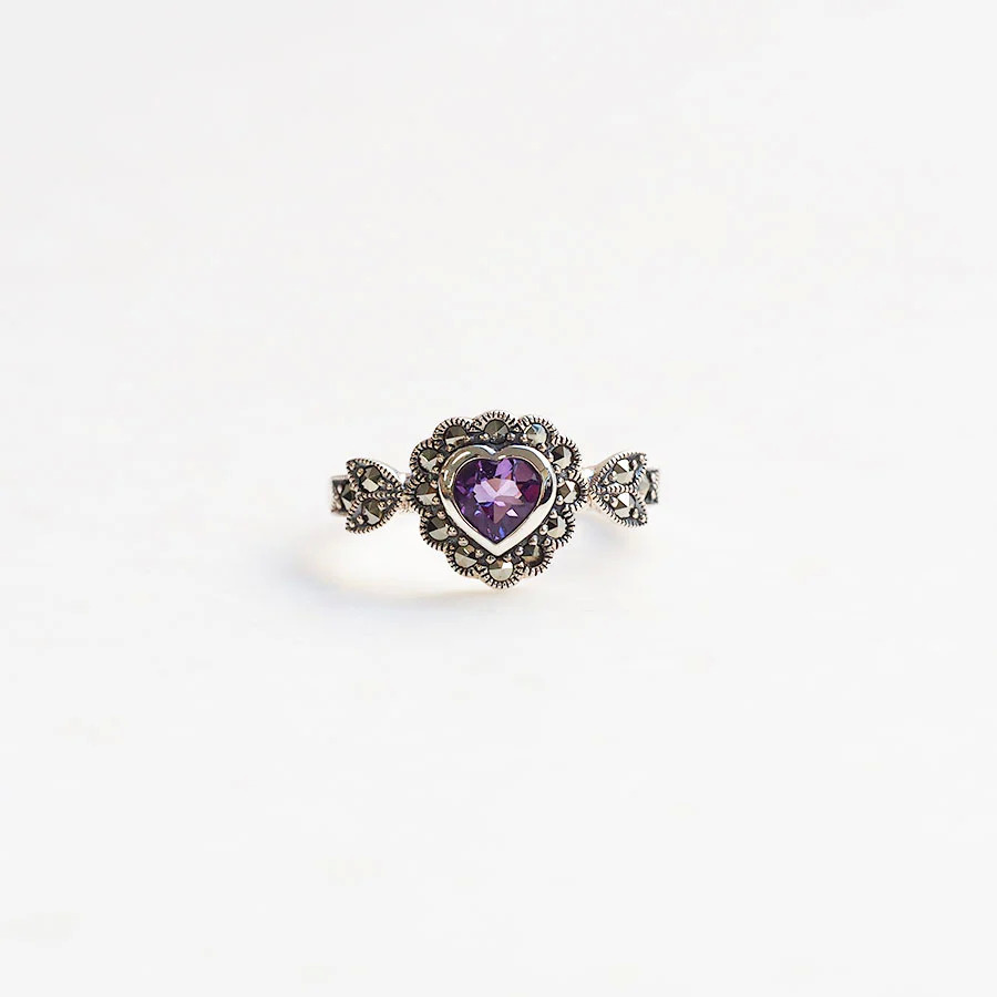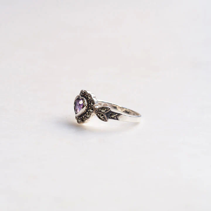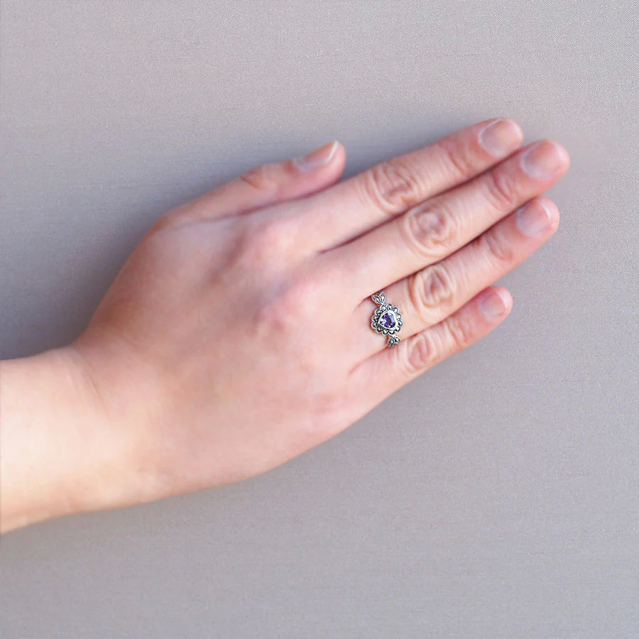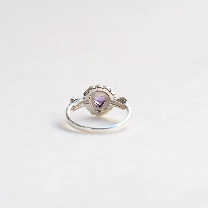 紫水晶高貴嘅紫色營造出成熟又可愛嘅感覺,心形設計嘅戒指。