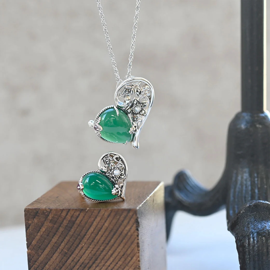 💚 2025-2026 銀飾運勢指南|綠瑪瑙粉紅碧璽心形Marcasite珍珠套裝 (925銀 + 天然綠瑪瑙 + 粉紅碧璽 + Marcasite + 淡水珍珠|心形吊墜/戒指二用,復古花卉設計) 「綠心粉緣,碧璽旺愛,Marcasite 閃護,珍珠納福」 您手上呢套 925銀 + 綠瑪瑙 + 粉紅碧璽 + Marcasite + 珍珠心形套裝,五行金生木 + 水火土調和,主打 桃花爆發、感情甜蜜、事業生機、貴人護航、健康和樂、化解爛桃花 💖 歐洲復古風:綠瑪瑙心主石(木生財緣)+粉紅碧璽點綴(火旺愛情)+Marcasite 滿鑲花枝(吸財閃耀)+珍珠花心(守福圓滿)+銀鏤空雕花,象徵「綠心開運+粉碧聚愛+馬卡賽聚財+珍珠納福+金木生輝」! 一物二用:吊墜→日常旺桃花、戒指→職場鎖姻緣,隨心切換樂運! 無需開光,心誠則靈!即刻睇您嘅生肖可唔可以戴~