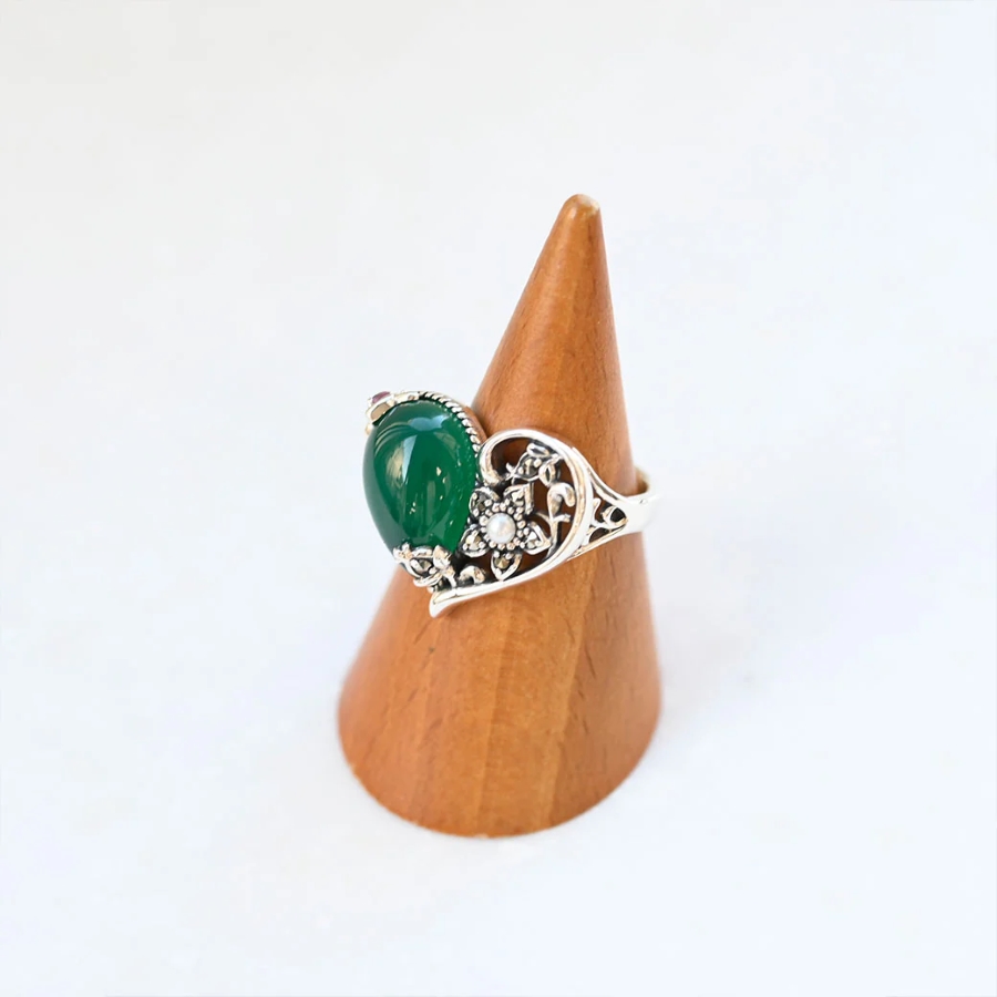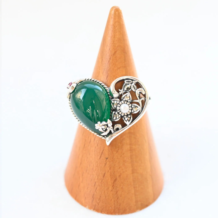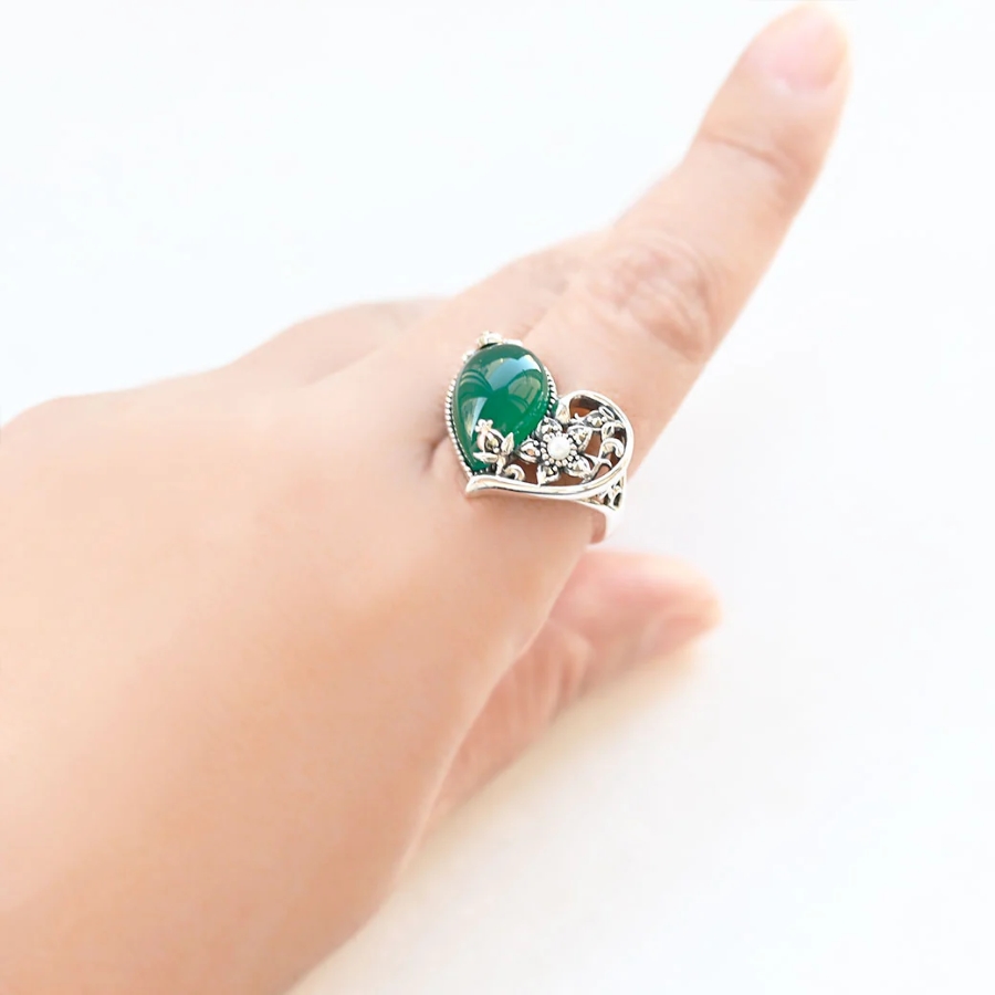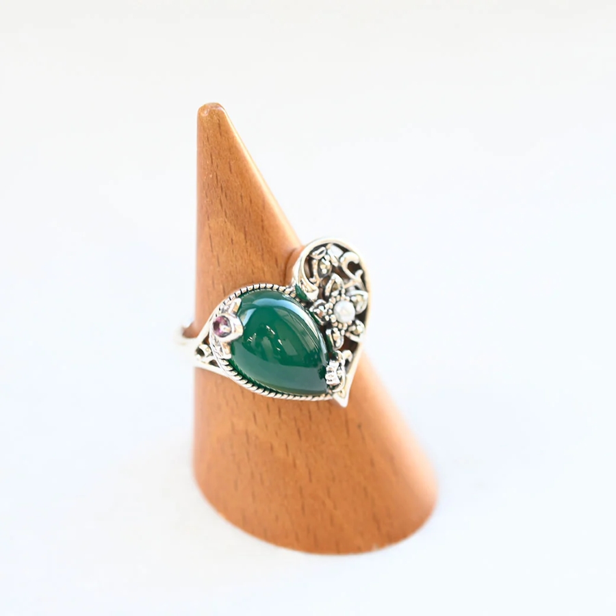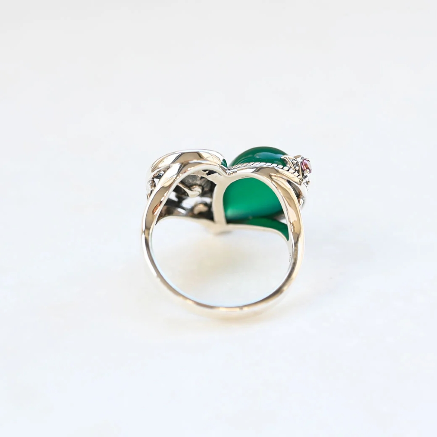 呢枚可愛嘅心形戒指結合咗綠瑪瑙清新透明嘅感覺同優美嘅設計。