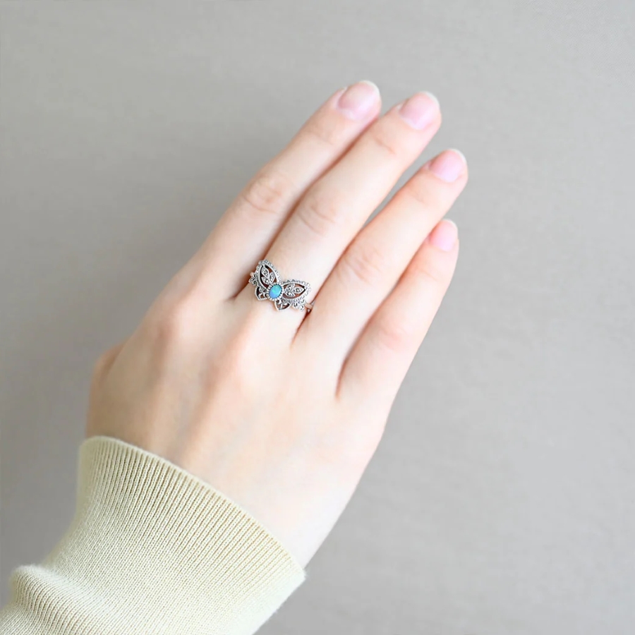 【Made in Japan】SV 雙層蛋白石蝴蝶戒指