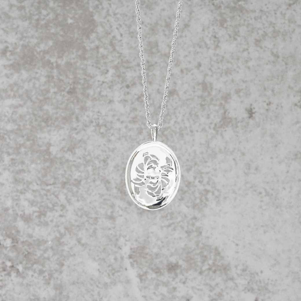 「River Lace」系列的吊墜,精緻的鏤空設計與銀色光澤的金屬相互映襯,優雅得如同透過蕾絲般的設計,美麗地點綴於胸前。米粒紋的細膩光輝輕柔地反射光線,而馬克賽石的閃爍則作為高雅的點綴。體型雖大但兼具沉穩氣質,既能融入簡約的穿搭,又能帶來洗練的感覺。